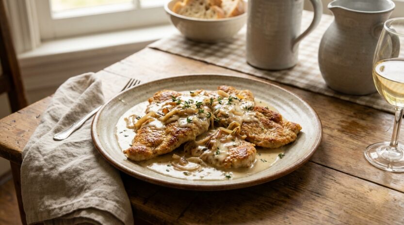 Variantes faciles : une cuillère de moutarde pour une sauce plus punchy, quelques champignons émincés revenus avec les échalotes pour un côté forestier, ou un filet de citron en toute fin pour réveiller la crème. Pour les enfants, la moutarde reste optionnelle et la sauce garde une douceur lactée très rassurante.