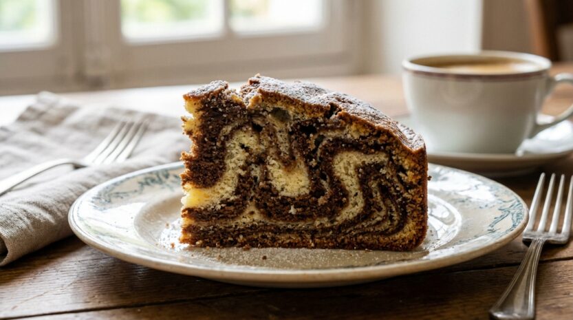 Ce marbré se suffit à lui-même, mais quelques accompagnements bien choisis peuvent le sublimer lors d’un goûter dominical ou d’une fin de repas. Une crème anglaise légère, parfumée à la vanille, viendra contraster avec les notes torréfiées du gâteau. Pour une touche plus fraîche en cette saison, une compote de pommes maison peu sucrée s’accorde merveilleusement avec la simplicité du biscuit. L’association du fruit cuit et du gâteau crée un équilibre gourmand idéal.