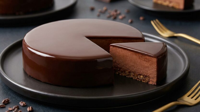 Pour obtenir cette finition digne d’une vitrine, le glaçage ne s’improvise pas. C’est l’étape qui transforme un bon gâteau en un dessert spectaculaire. Le secret réside dans un mélange précis : le glaçage miroir est réalisé avec 150 g de chocolat, 75 g de crème et 50 g de beurre. Il faut d’abord porter la crème à ébullition avant de la verser sur le chocolat haché. Une fois le mélange lisse, l’incorporation du beurre offre une brillance incomparable à la préparation.