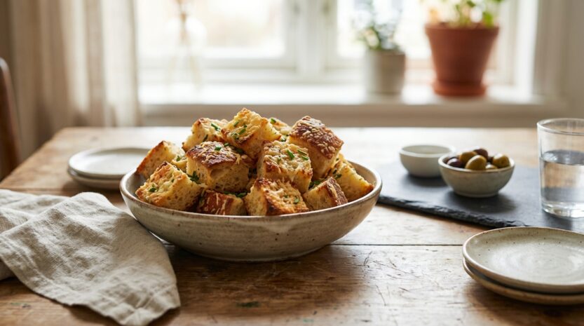 Quand le pain rassis devient la star de l’apéro : les dés au parmesan qu’on dévore sans s’arrêter