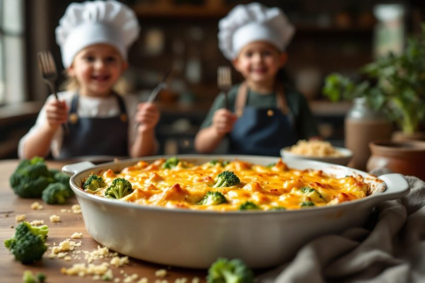 Les plus jeunes peuvent, sous surveillance, laver et séparer les fleurettes. Ils adorent mélanger la béchamel hors du feu pour la rendre bien lisse. Les grands prennent plaisir à verser le fromage râpé ou à disposer les brocolis dans le plat, étape par étape, pour un visuel coloré et régulier.