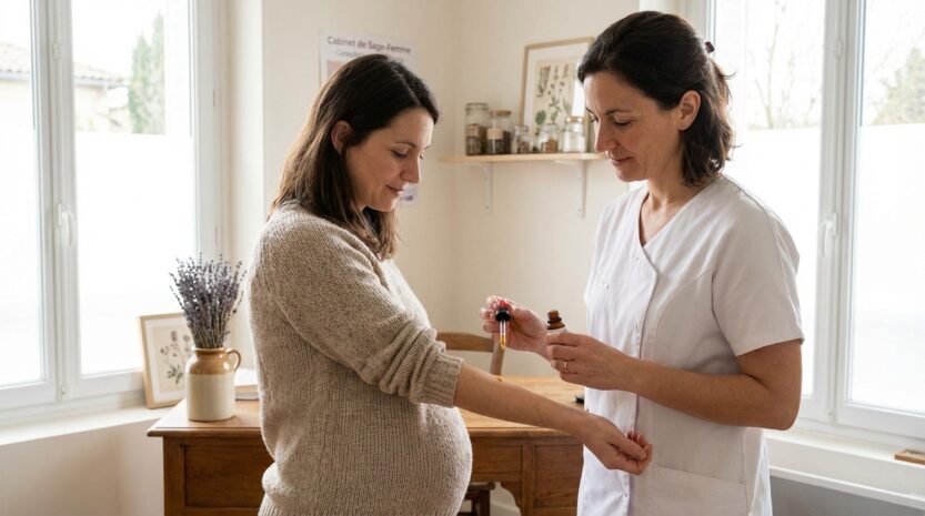 Même si vous avez sélectionné l’une des six huiles permises, un entretien régulier avec votre sage-femme est la clé d’une grossesse sereine. Ce dialogue de prévention incontournable permet d’écarter rapidement et efficacement les risques d’intoxication, en fonction de votre dossier personnel et de votre sensibilité. Chaque femme enceinte est unique : ce qui convient à l’une peut s’avérer moins adapté pour l’autre. Aborder le sujet de l’aromathérapie lors de votre rendez-vous mensuel vous garantit un feu vert rassurant et adapté à la progression de votre grossesse.