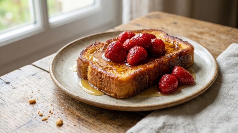 Servir, conserver, refaire : le duo pain perdu + fraises rôties au quotidien