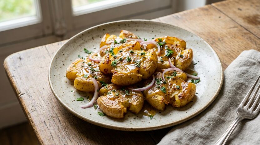 Cette salade de pommes de terre rôties façon « smashed » réinvente la tradition, loin des déclinaisons saturées de mayonnaise. En jouant sur les contrastes de température et de texture, elle permet de composer un repas complet, convivial et joyeux, parfait pour mettre en valeur les trouvailles du marché. Tout en simplicité, ce plat prouve que l’authenticité bien maîtrisée est souvent le secret des repas les plus gourmands en famille.