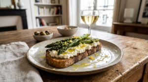 « Qu’est-ce que tu as mis dans cette ricotta ? » : mes invités m’ont posé la question toute la soirée avec ces bruschettas aux asperges