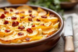 Gratin d’automne que toute la famille aime : pommes de terre, poireaux, lardons et beaucoup de plaisir à table