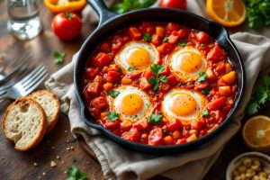La shakshuka : cette poêlée œufs-tomates se parfume d’épices douces et ravit petits et grands au brunch !