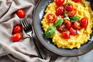 Ça change des coquillettes ! Voici la polenta crémeuse au parmesan aux tomates rôties et basilic que les enfants adorent