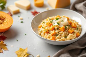 Dès les premiers frissons d’octobre, voici le risotto potimarron-parmesan le plus doux qui plait aux petits et grands !